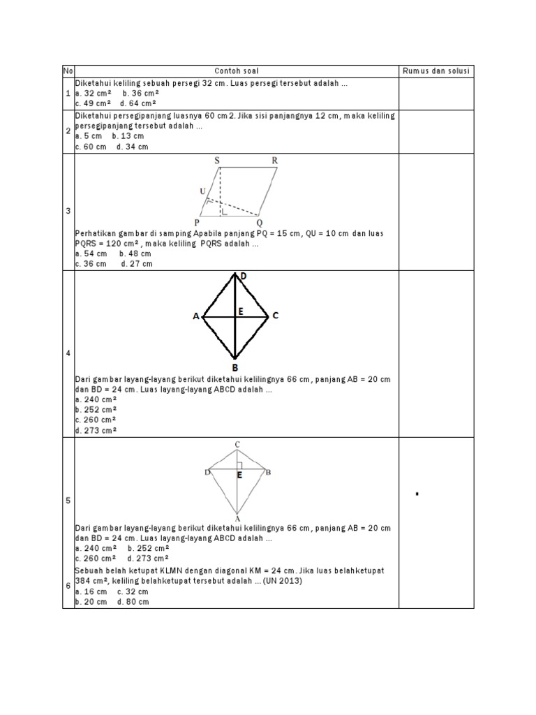 Diketahui Sisi Sebuah Persegi 14 Cm Berapakah Keliling Dan Luas Persegi Tersebut Youtube from i.ytimg.com Sebuah papan cartur memiliki panjang sisi bagian bawah 30 cm. Sepetak sawah berbentuk persegi dengan panjang sisi 60 cm. Diketahui keliling sebuah persegi k 64 cm k 4 x s 64 4 x s s s 16 cm. Panjang sisi persegi i = 10 cm panjang sisi persegi ii = 4 cm ditanya: Diagonal persegi adalah √2 (sekitar 1,414) kali panjang sisi persegi. Apabila diketahui luas sebuah bangun persegi ialah 64 cm², hitunglah berapakah panjang sisi persegi tersebut: Berikut ini contoh soal persegi dan pembahasannya: S = sisi/rusuk luas persegi l = s² keliling persegi k = 4s sisi persegi s = √l s = keliling :