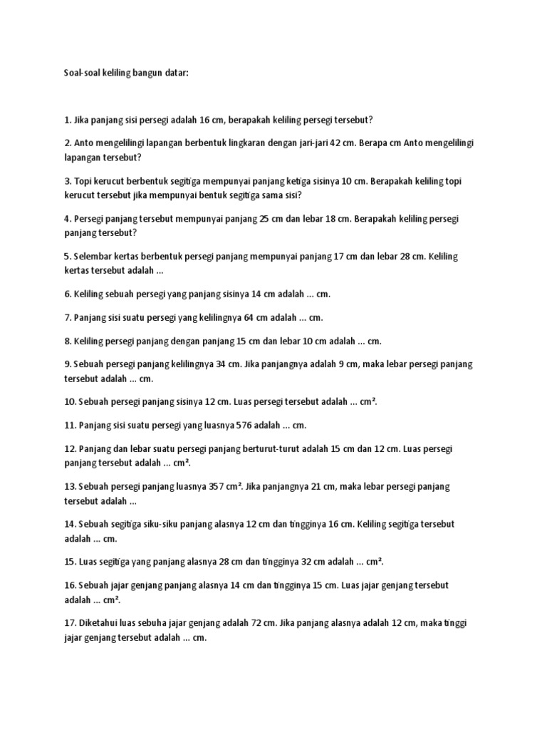 Keliling persegi yang mempunyai sisi 14 cm adalah.